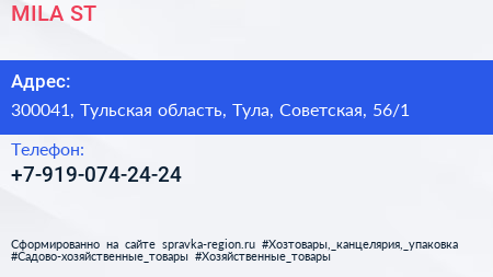 MILA.ST по адресу 300041, Тульская область, Тула, Советская, 56/1 в дальнейшем Организация, размещена в следующих категориях: