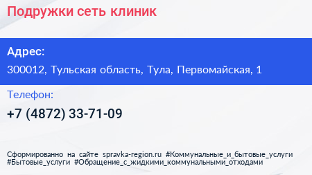 Подружки, сеть клиник по адресу 300012, Тульская область, Тула, Первомайская, 1 в дальнейшем Организация, размещена в следующих категориях: