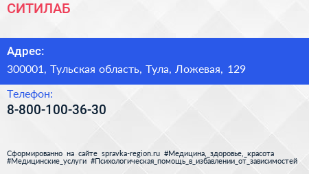 СИТИЛАБ по адресу 300001, Тульская область, Тула, Ложевая, 129 в дальнейшем Организация, размещена в следующих категориях: