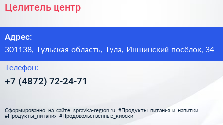 Целитель, центр по адресу 301138, Тульская область, Тула, Иншинский посёлок, 34 в дальнейшем Организация, размещена в следующих категориях: