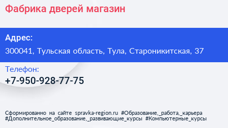Фабрика дверей, магазин по адресу 300041, Тульская область, Тула, Староникитская, 37 в дальнейшем Организация, размещена в следующих категориях:
