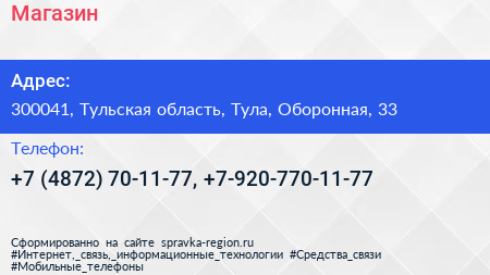 Магазин по адресу 300041, Тульская область, Тула, Оборонная, 33 в дальнейшем Организация, размещена в следующих категориях: