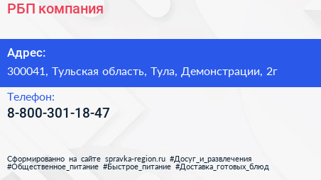 РБП, компания по адресу 300041, Тульская область, Тула, Демонстрации, 2г в дальнейшем Организация, размещена в следующих категориях:
