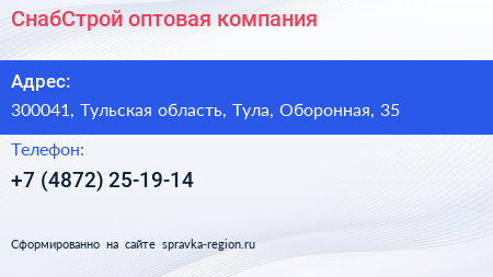 СнабСтрой, оптовая компания по адресу 300041, Тульская область, Тула, Оборонная, 35 в дальнейшем Организация, размещена в следующих категориях: