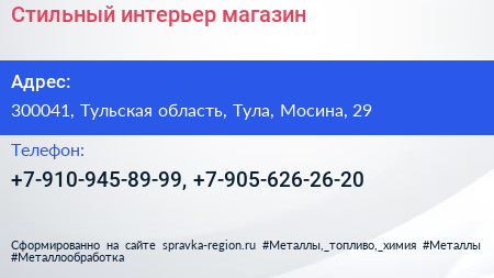 Адрес: Тульская область, Тула, Фрунзе, 1а/8