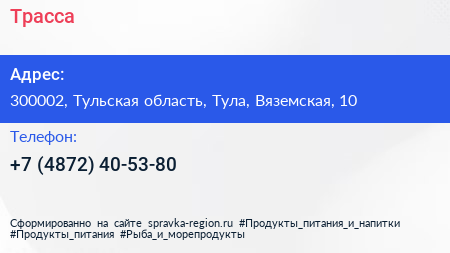 Трасса по адресу 300002, Тульская область, Тула, Вяземская, 10 в дальнейшем Организация, размещена в следующих категориях: