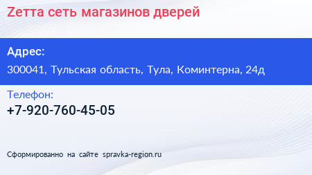 Zетта, сеть магазинов дверей по адресу 300041, Тульская область, Тула, Коминтерна, 24д в дальнейшем Организация, размещена в следующих категориях: