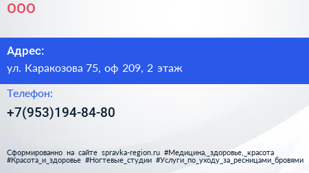 ООО по адресу ул. Каракозова 75, оф 209, 2 этаж в дальнейшем Организация, размещена в следующих категориях: