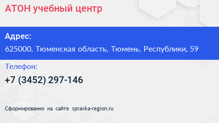АТОН, учебный центр по адресу 625000, Тюменская область, Тюмень, Республики, 59 в дальнейшем Организация, размещена в следующих категориях: