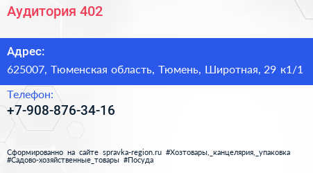 Аудитория 402 по адресу 625007, Тюменская область, Тюмень, Широтная, 29 к1/1 в дальнейшем Организация, размещена в следующих категориях: