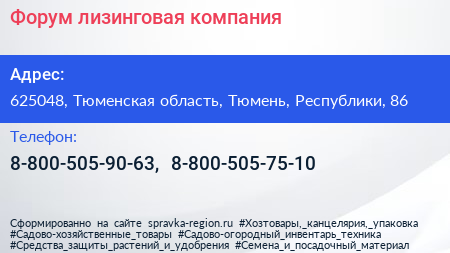 Форум, лизинговая компания по адресу 625048, Тюменская область, Тюмень, Республики, 86 в дальнейшем Организация, размещена в следующих категориях: