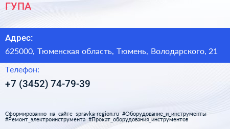 ГУПА по адресу 625000, Тюменская область, Тюмень, Володарского, 21 в дальнейшем Организация, размещена в следующих категориях: