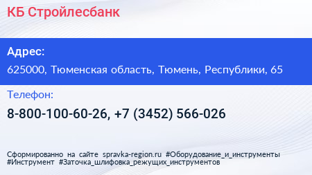 КБ Стройлесбанк по адресу 625000, Тюменская область, Тюмень, Республики, 65 в дальнейшем Организация, размещена в следующих категориях: