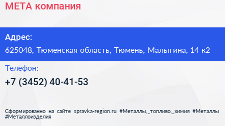 МЕТА, компания по адресу 625048, Тюменская область, Тюмень, Малыгина, 14 к2 в дальнейшем Организация, размещена в следующих категориях: