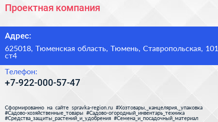 Проектная компания по адресу 625018, Тюменская область, Тюмень, Ставропольская, 101 ст4 в дальнейшем Организация, размещена в следующих категориях: