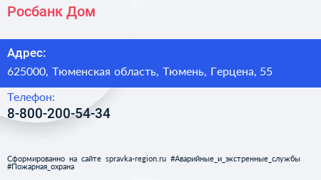 Росбанк Дом по адресу 625000, Тюменская область, Тюмень, Герцена, 55 в дальнейшем Организация, размещена в следующих категориях: