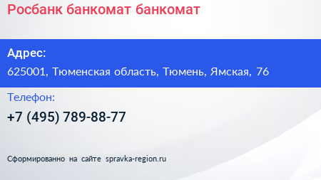 Росбанк, банкомат, банкомат по адресу 625001, Тюменская область, Тюмень, Ямская, 76 в дальнейшем Организация, размещена в следующих категориях: