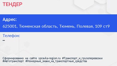 ТЕНДЕР+ по адресу 625001, Тюменская область, Тюмень, Полевая, 109 ст9 в дальнейшем Организация, размещена в следующих категориях: