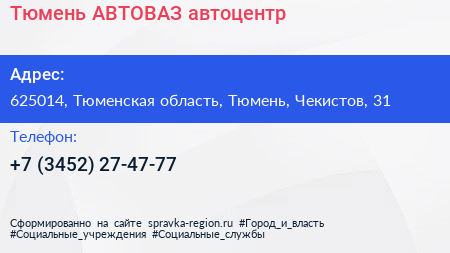 Тюмень-АВТОВАЗ, автоцентр по адресу 625014, Тюменская область, Тюмень, Чекистов, 31 в дальнейшем Организация, размещена в следующих категориях: