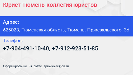 Юрист Тюмень, коллегия юристов по адресу 625023, Тюменская область, Тюмень, Пржевальского, 36 в дальнейшем Организация, размещена в следующих категориях:
