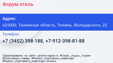 Форум, отель по адресу 625000, Тюменская область, Тюмень, Володарского, 22 в дальнейшем Организация, размещена в следующих категориях: