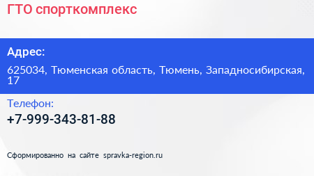 ГТО, спорткомплекс по адресу 625034, Тюменская область, Тюмень, Западносибирская, 17 в дальнейшем Организация, размещена в следующих категориях: