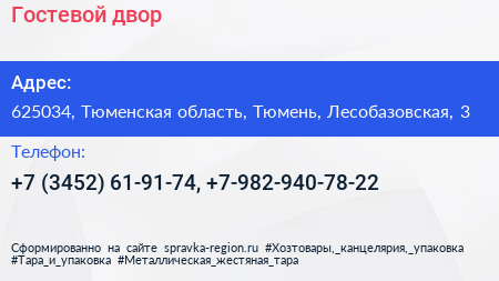 Гостевой двор по адресу 625034, Тюменская область, Тюмень, Лесобазовская, 3 в дальнейшем Организация, размещена в следующих категориях: