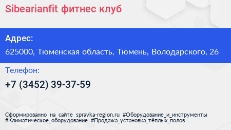 Sibearianfit, фитнес-клуб по адресу 625000, Тюменская область, Тюмень, Володарского, 26 в дальнейшем Организация, размещена в следующих категориях: