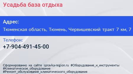Усадьба, база отдыха по адресу Тюменская область, Тюмень, Червишевский тракт 7 км, 7 в дальнейшем Организация, размещена в следующих категориях: