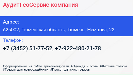 АудитГеоСервис, компания по адресу 625002, Тюменская область, Тюмень, Немцова, 22 в дальнейшем Организация, размещена в следующих категориях: