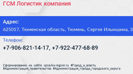 ГСМ-Логистик, компания по адресу 625017, Тюменская область, Тюмень, Сергея Ильюшина, 3 в дальнейшем Организация, размещена в следующих категориях: