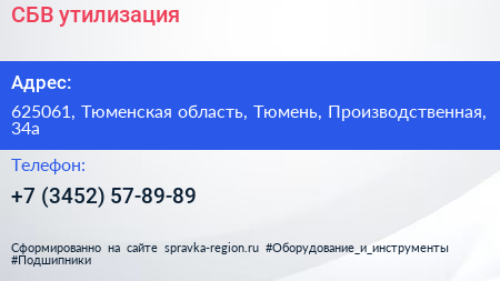 СБВ утилизация по адресу 625061, Тюменская область, Тюмень, Производственная, 34а в дальнейшем Организация, размещена в следующих категориях: