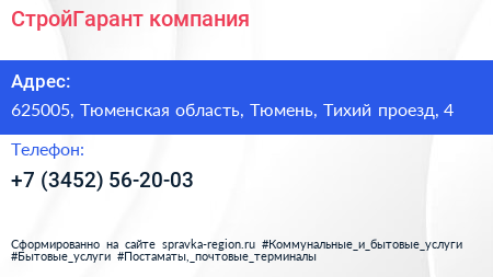 СтройГарант, компания по адресу 625005, Тюменская область, Тюмень, Тихий проезд, 4 в дальнейшем Организация, размещена в следующих категориях: