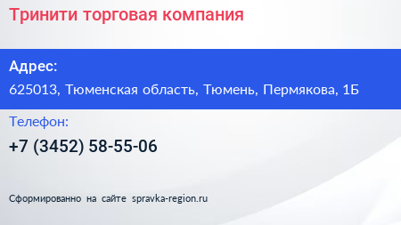 Тринити, торговая компания по адресу 625013, Тюменская область, Тюмень, Пермякова, 1Б в дальнейшем Организация, размещена в следующих категориях: