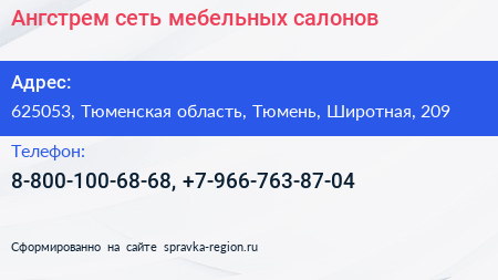 Ангстрем, сеть мебельных салонов по адресу 625053, Тюменская область, Тюмень, Широтная, 209 в дальнейшем Организация, размещена в следующих категориях: