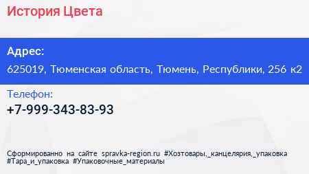 История Цвета по адресу 625019, Тюменская область, Тюмень, Республики, 256 к2 в дальнейшем Организация, размещена в следующих категориях: