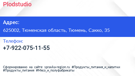 Plodstudio по адресу 625002, Тюменская область, Тюмень, Сакко, 35 в дальнейшем Организация, размещена в следующих категориях: