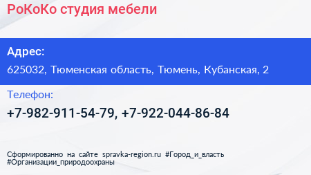 РоКоКо, студия мебели по адресу 625032, Тюменская область, Тюмень, Кубанская, 2 в дальнейшем Организация, размещена в следующих категориях: