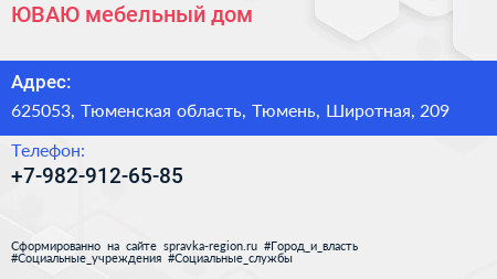 ЮВАЮ, мебельный дом по адресу 625053, Тюменская область, Тюмень, Широтная, 209 в дальнейшем Организация, размещена в следующих категориях: