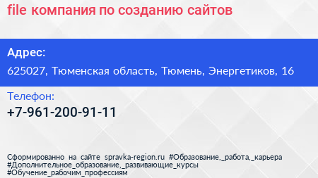 & file, компания по созданию сайтов по адресу 625027, Тюменская область, Тюмень, Энергетиков, 16 в дальнейшем Организация, размещена в следующих категориях:
