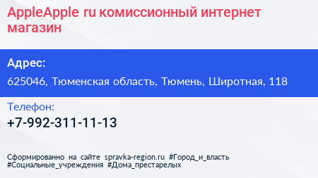 AppleApple.ru, комиссионный интернет-магазин по адресу 625046, Тюменская область, Тюмень, Широтная, 118 в дальнейшем Организация, размещена в следующих категориях: