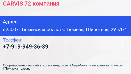 CARVIS 72, компания по адресу 625007, Тюменская область, Тюмень, Широтная, 29 к1/1 в дальнейшем Организация, размещена в следующих категориях: