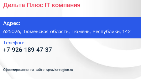 Дельта Плюс, IT компания по адресу 625026, Тюменская область, Тюмень, Республики, 142 в дальнейшем Организация, размещена в следующих категориях:
