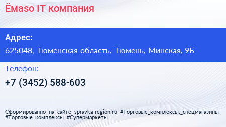 Ёмаsо, IT-компания по адресу 625048, Тюменская область, Тюмень, Минская, 9Б в дальнейшем Организация, размещена в следующих категориях: