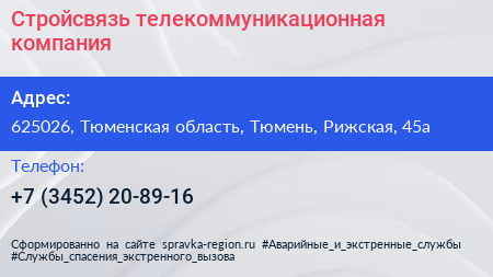 Стройсвязь, телекоммуникационная компания по адресу 625026, Тюменская область, Тюмень, Рижская, 45а в дальнейшем Организация, размещена в следующих категориях: