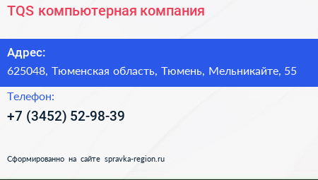 TQS, компьютерная компания по адресу 625048, Тюменская область, Тюмень, Мельникайте, 55 в дальнейшем Организация, размещена в следующих категориях: