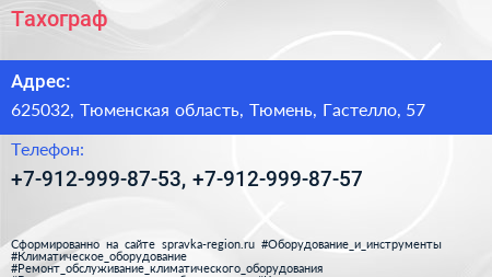 Тахограф по адресу 625032, Тюменская область, Тюмень, Гастелло, 57 в дальнейшем Организация, размещена в следующих категориях: