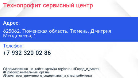 Технопрофит, сервисный центр по адресу 625062, Тюменская область, Тюмень, Дмитрия Менделеева, 1 в дальнейшем Организация, размещена в следующих категориях:
