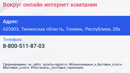Вокруг онлайн, интернет-компания по адресу 625003, Тюменская область, Тюмень, Республики, 28а в дальнейшем Организация, размещена в следующих категориях: