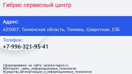 Гибрис, сервисный центр по адресу 625007, Тюменская область, Тюмень, Широтная, 13Б в дальнейшем Организация, размещена в следующих категориях:
